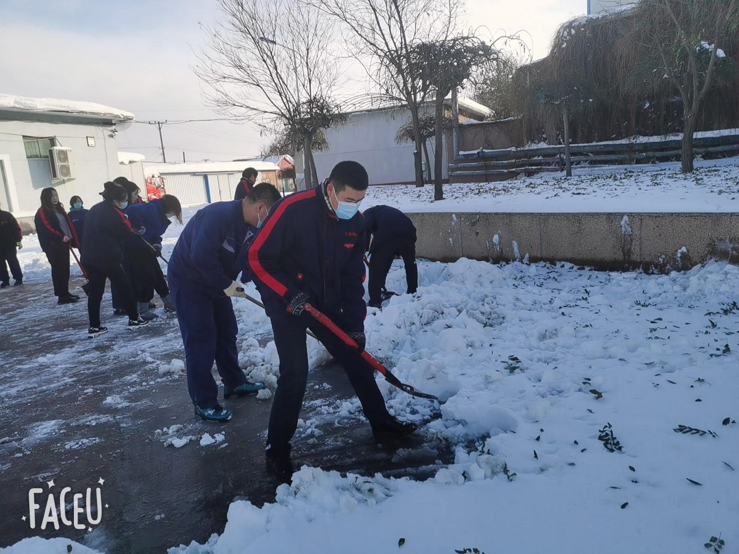 初雪是景,除雪是情。落雪無聲,洗盡鉛華。最美的不是下雪天,而是大家一起努力奮斗的身影。九泰人的辛勤汗水在寒冬揮灑,別樣的青春在雪中閃光。大家的歡聲笑語在白茫茫的雪地里漸漸消散,掃雪任務(wù)圓滿完成!