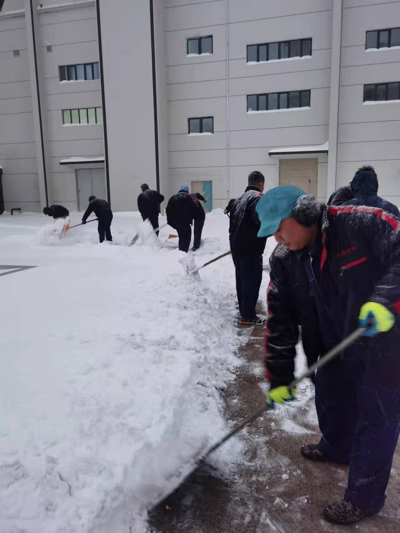 面對公司廠區(qū)內(nèi)的積雪,為了保證明天上班后的順利開工,九泰人沒有等靠,公司行政部郭春風(fēng)副總經(jīng)理積極安排布置,通知包裝中心、運(yùn)輸班、綠化班、食堂的部分員工步行來到了公司,對公司院內(nèi)主要道路以及通往食堂沿街路面的積雪進(jìn)行清掃。
